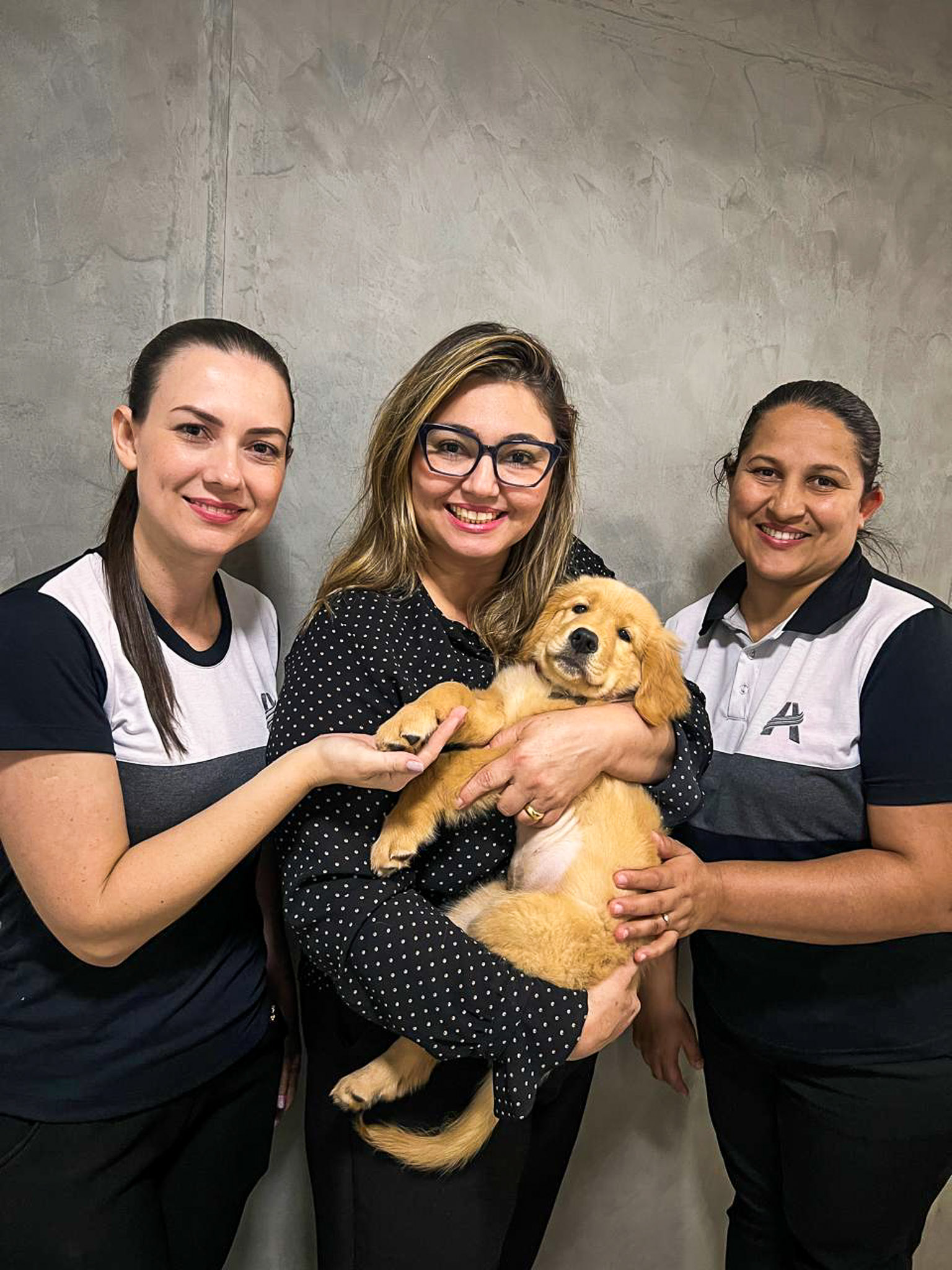 La directora Telma Alexandre carga a la perrita “Amora” junto a sus orientadoras. (Foto: Divulgación)